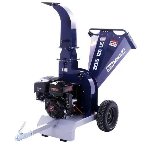 Le BullMach ZEUS 120 LE est un broyeur thermique professionnel conçu pour transformer facilement les déchets verts, broussailles et branches épaisses en copeaux fins, parfaits pour le compostage.