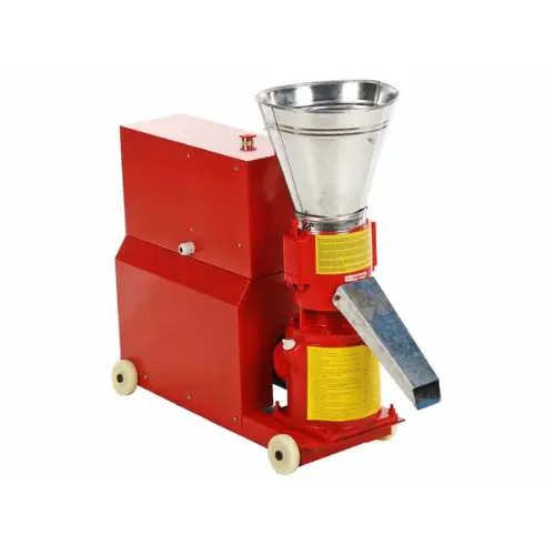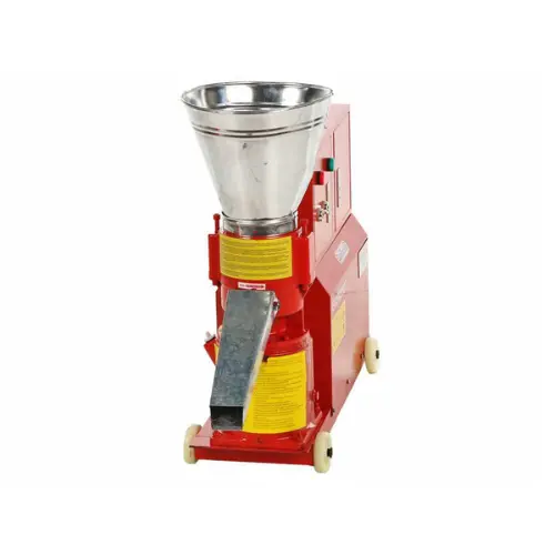 Le matériau à transformer est introduit dans une trémie de chargement robuste, puis comprimé par deux rouleaux en acier sur une matrice circulaire de 150 mm de diamètre. Le pellet obtenu est ensuite éjecté latéralement par une goulotte de sortie pratique.