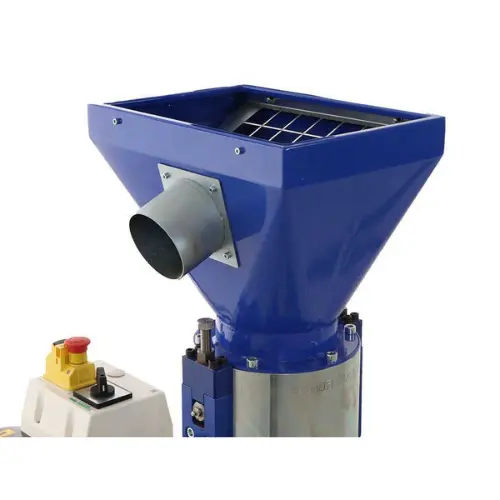 La trémie de chargement (37×26 cm en haut / 19×19 cm à la base) facilite l’introduction du matériau brut.