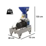 Cette presse est équipée d’une filière rotative en acier de 190 mm et de deux rouleaux presseurs de 88 mm, chacun muni d’un double roulement pour une compression homogène.